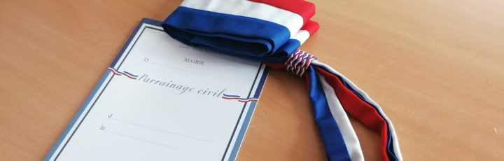 Le parrainage civil, appelé aussi baptême civil ou baptême républicain, consiste en une cérémonie laïque célébrée devant le maire ou l'un de ses adjoints, au cours de laquelle les marraine(s) et/ou parrain(s) s'engagent moralement à accompagner l'enfant dans son entrée au sein de la communauté nationale.